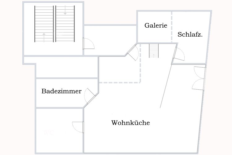 Die Wohnung hat ein abgeschlossenes Schafzimmer mit Doppelbett sowie weitere Schlafmöglichkeiten für 2 Personen auf einer offenen Galerie über dem großen Wohnraum. Sie finden ein chic-funktionales Bad mit Dusche, Badewanne, WC und Fußbodenheizung sowie eine separate Toilette, beides mit Fenster.